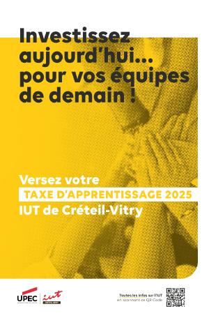 Pour toute information complémentaire, n’hésitez pas à nous contacter à pe-iutcv@u-pec.fr ou au 01 45 17 16 88.